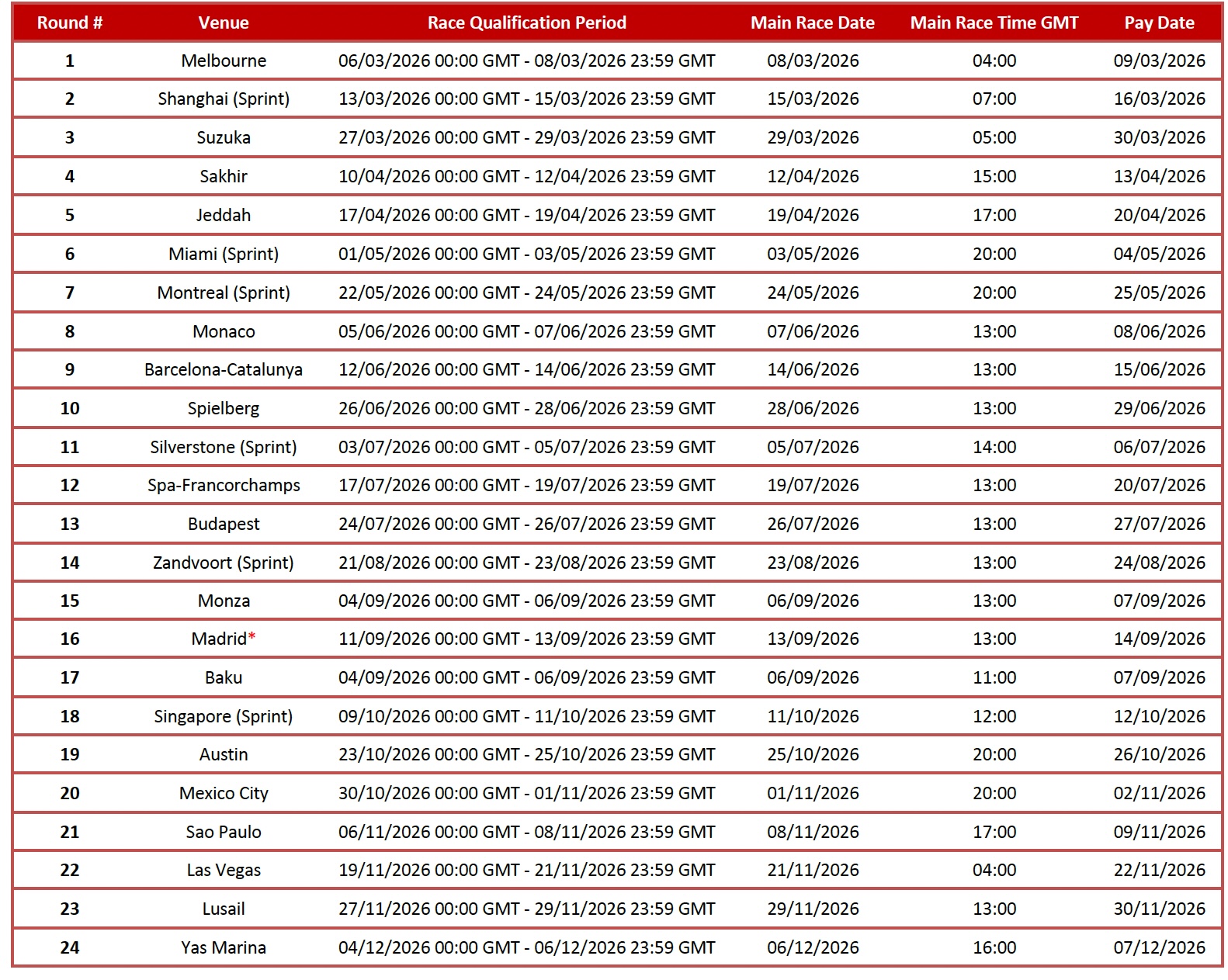 - Players can only complete each revenue mission once per race period during the mission qualification period to predict up to 1 race winner.